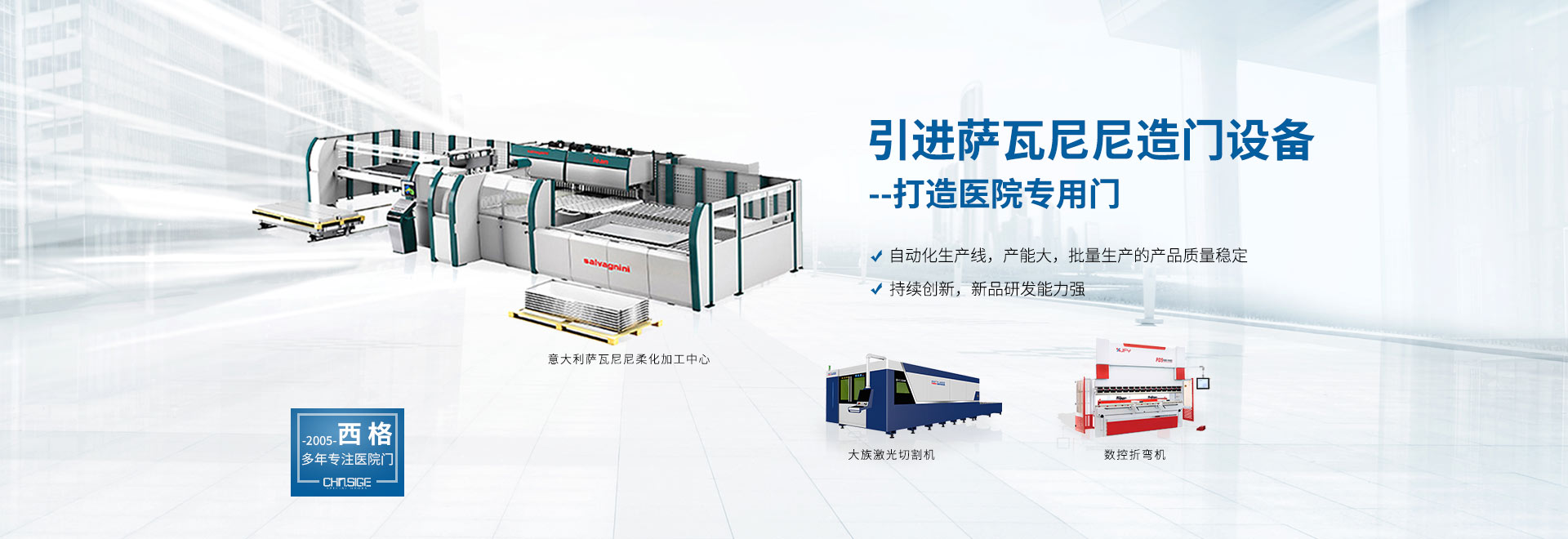 西格,國內大型醫(yī)院門生產基地,斥巨資建立 HPL和鋼質兩大材質的標準化醫(yī)院門生產線, 囊括行業(yè)主流醫(yī)院門品類,材質齊全,選購無憂。
